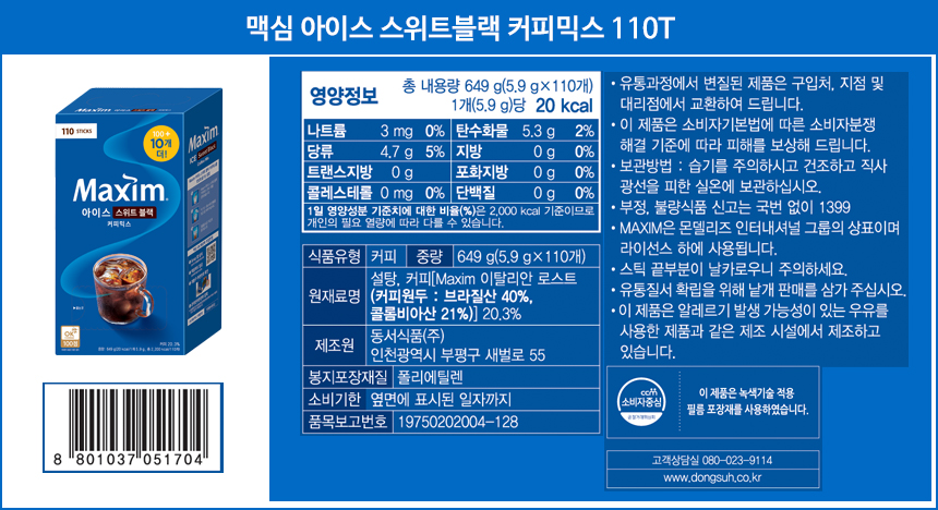 • 맥심 아이스 블랙커피믹스(5.9g*/100T/동서식품)