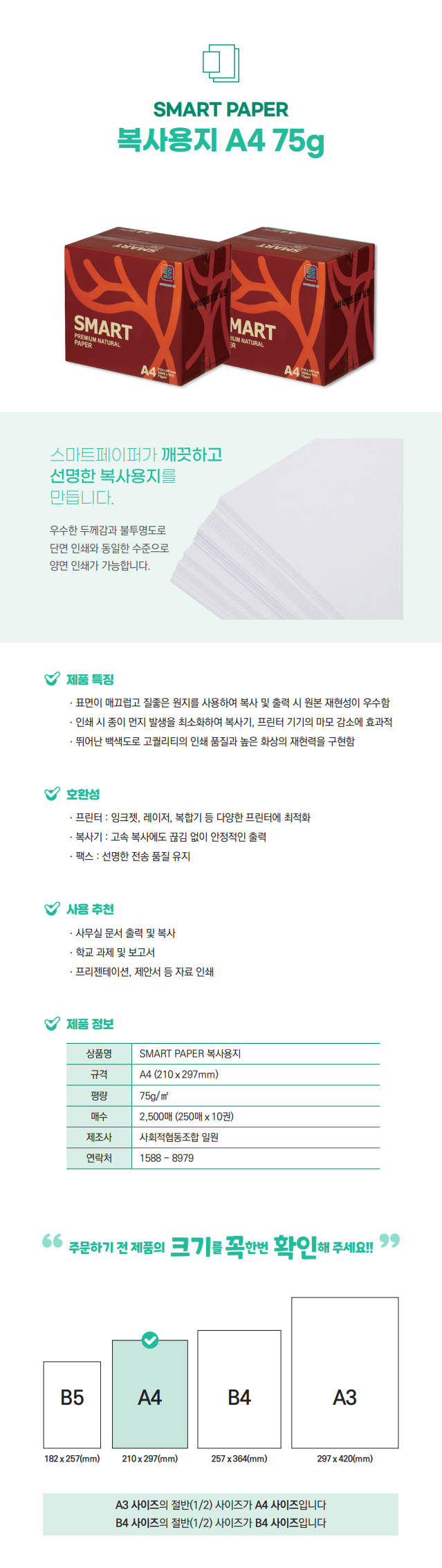 • 스마트 A4 복사용지 75g 1박스(2500매)(A4용지)