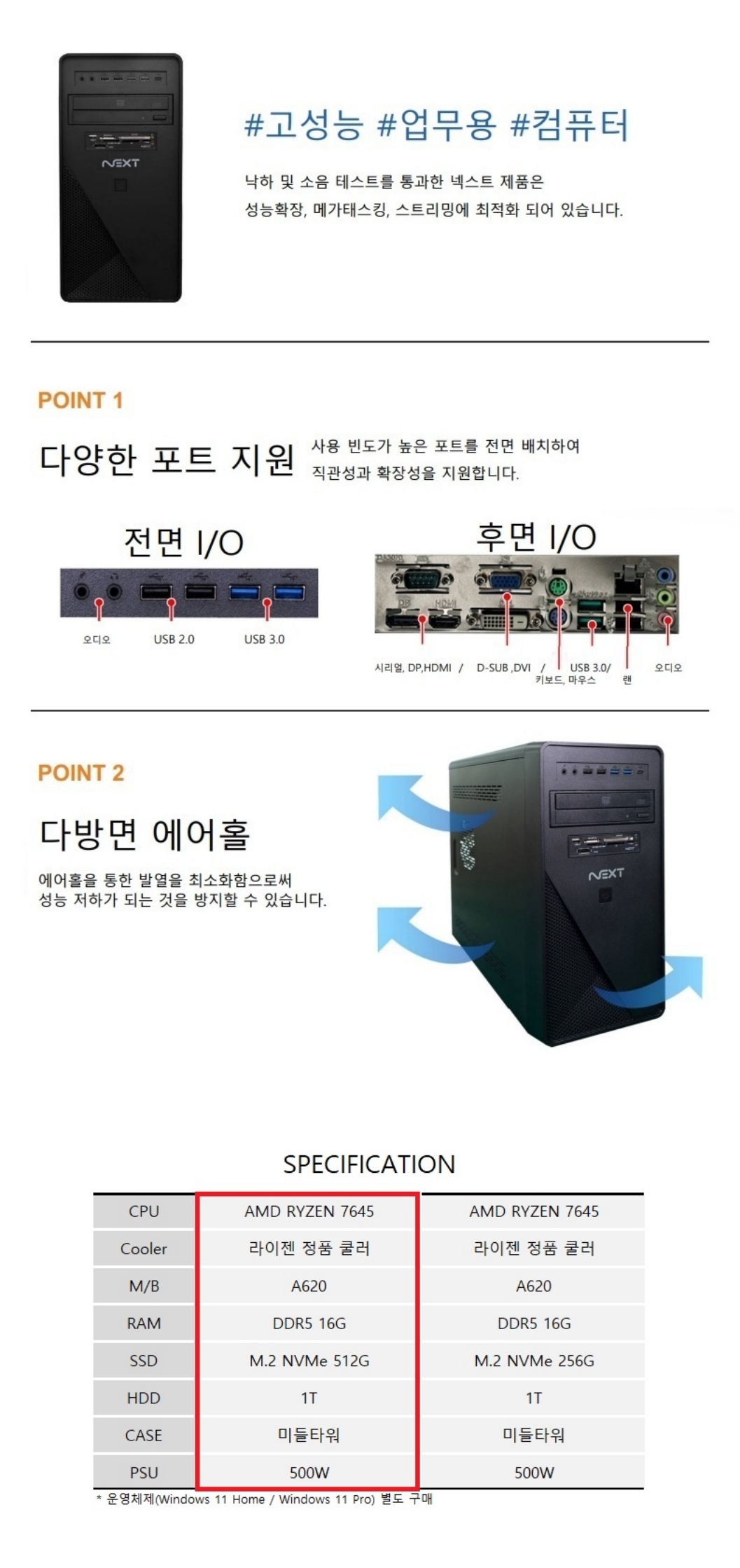 AMD R7645/DDR5 16G/SSD 512G/HDD 1T/OS Free DOS(별도구매)
